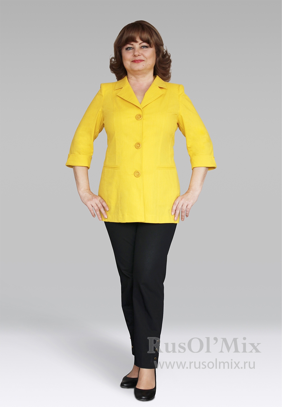 Описание: Стильный женский жакет. Жакет выполнен из льняной ткани приталенный. Рукав 3/4, втачной. По переду карманы в рамку, рабочие.