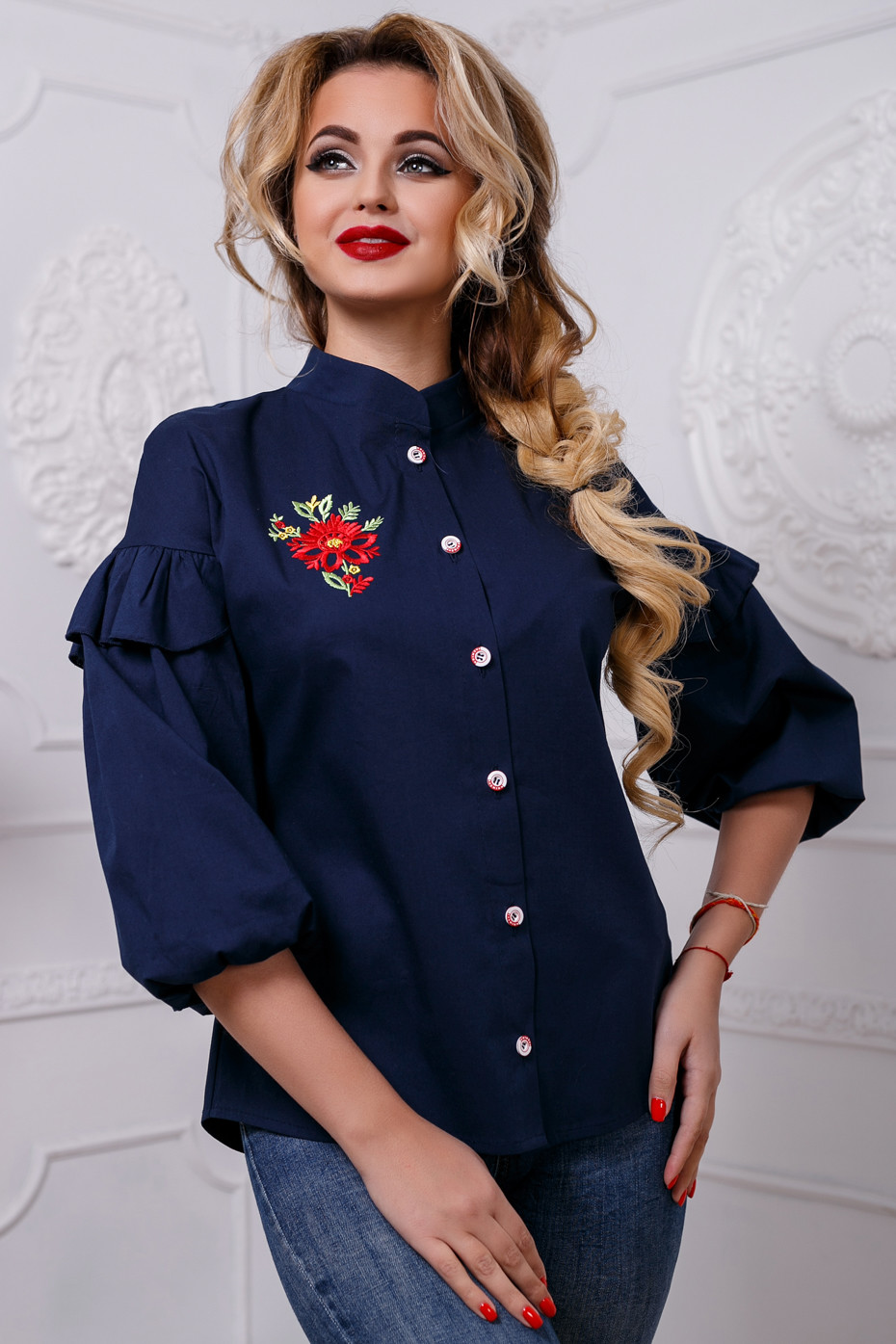 - блуза с центральной планкой по полочке, которая застегивается на пуговицы;
